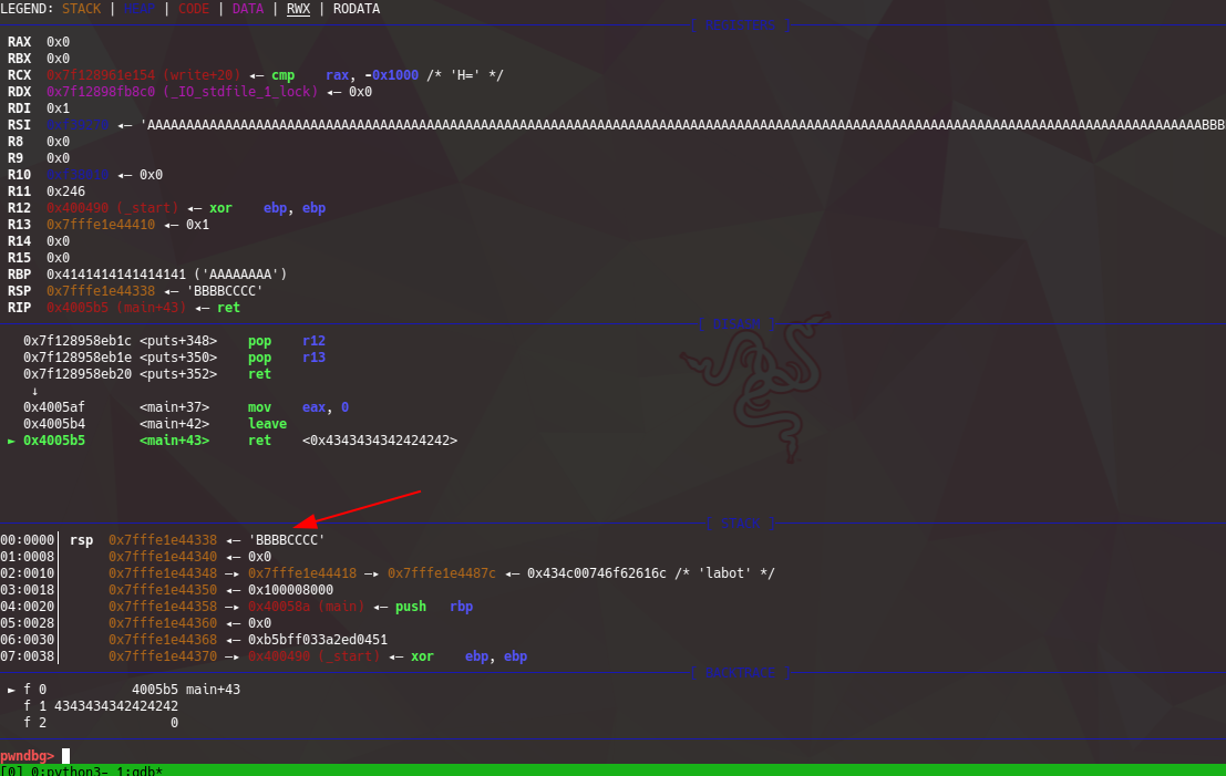 b * 0x000000000040061b'''.split('\n') # The command that will run gdb at startup