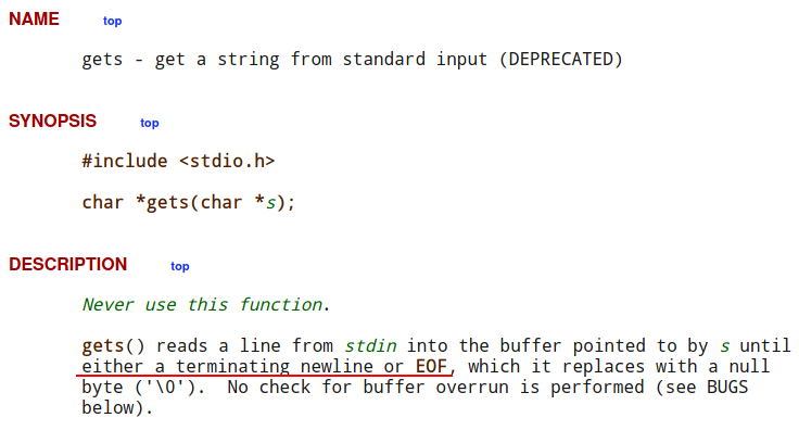 Lo bueno, es que la lectura de carácteres, se hace con gets, y no hay ningún tipo de fflush de por medio, por lo que leyendo el manual de gets, podemos concluir lo siguiente: