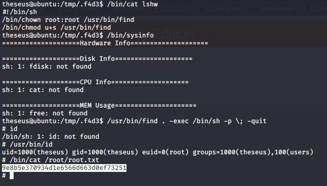 www-data@ubuntu:/tmp/.f4d3$ su - theseus
