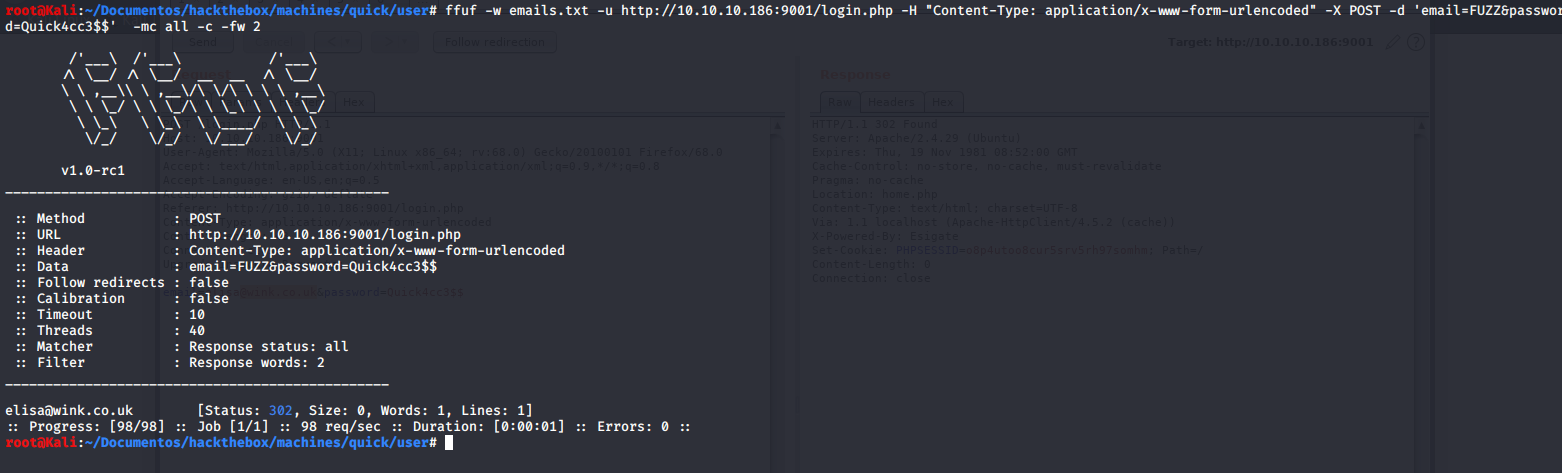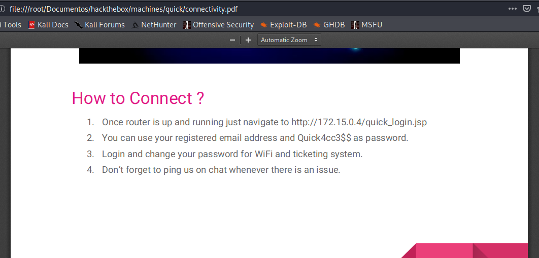 With the correct email, we suppose to be able to enter with Quick4cc3$$ as pw (if the user forgot to change the default password).
