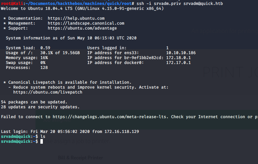 Running this, and sending a new job to our controlled server, we get the private key of srvadm :D !